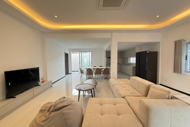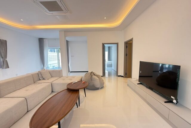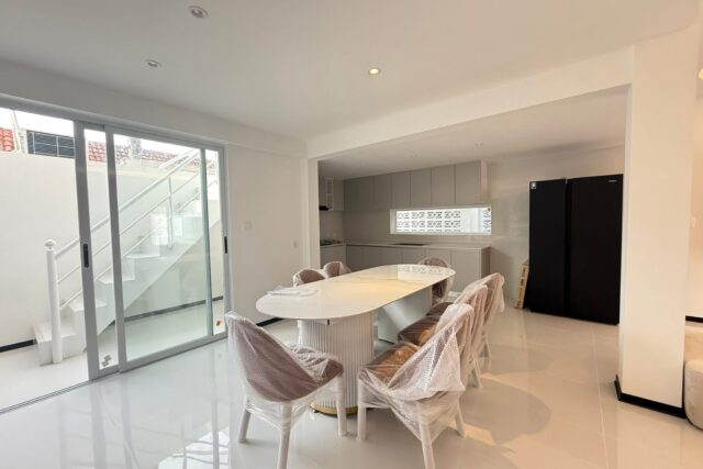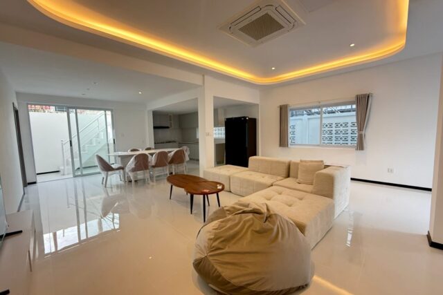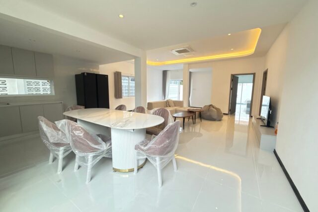 This spacious and fully furnished 4-bedroom, 5-bathroom villa offers comfort and privacy in the heart of Pattaya. With a private swimming pool, European-style kitchen, and generous 320 sq.m of living space, it’s ideal for families or long-term residents seeking a high-end lifestyle.